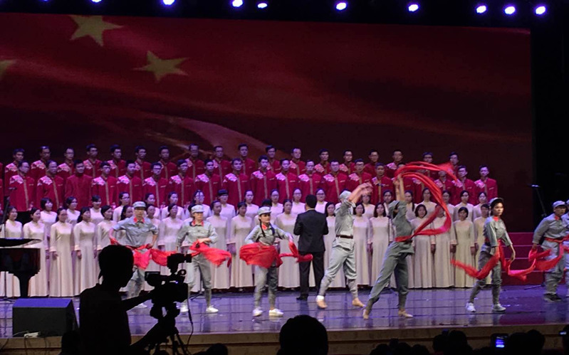 比赛当天,我们首先演唱的是指定曲目暨南大学校歌,接着是《保卫黄河》,富有张力的演唱仿佛为观众刻画了一幅幅为保卫黄河、保卫全中国而战斗的壮丽场景,铿锵有力、气势磅礴!