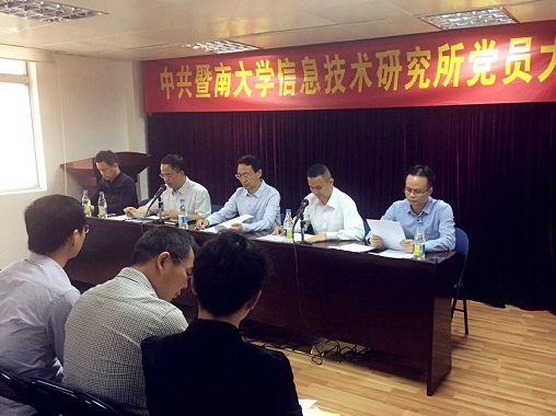 信息所党员大会 刘明所长主持会议 廖勇副部长致辞 党委书记刘远忠作党委工作报告 党委副书记兼纪委书记卢灵作纪委工作报告 党员投票
