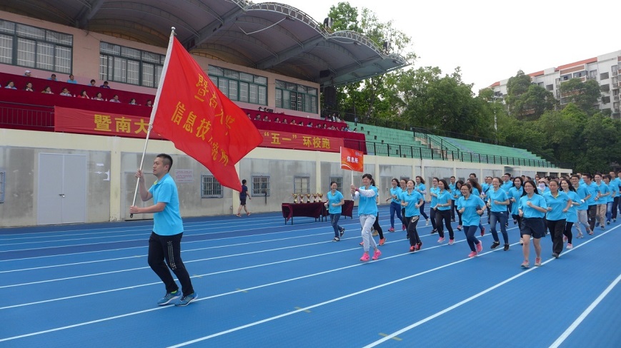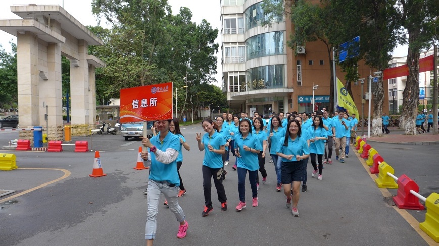 4月27日下午,由暨南大学工会主办的庆祝“五一”教职工环校跑活动在旭日运动场隆重举行。全校3000余名教职工参加活动,学校副校长、工会主席饶敏出席开跑仪式并致辞。