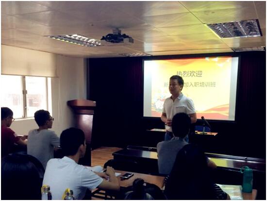 (退休老领导关健斌为新员工授课)