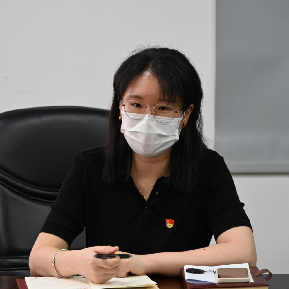 (党支部书记区小莹在会上分享参观学习体会)