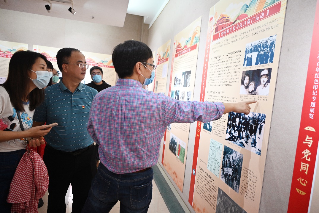 为庆祝中国共产党成立100周年,推动党史学习教育走深走实,引导党员们铭记党的百年光辉历程,厚植爱党爱国爱校情怀,赓续红色血脉,弘扬暨南精神,凝聚奋进力量,10月28日下午我所党委组织党员们参观“许党报国 勇毅弦诵”暨南大学百年红色印记专题展览。