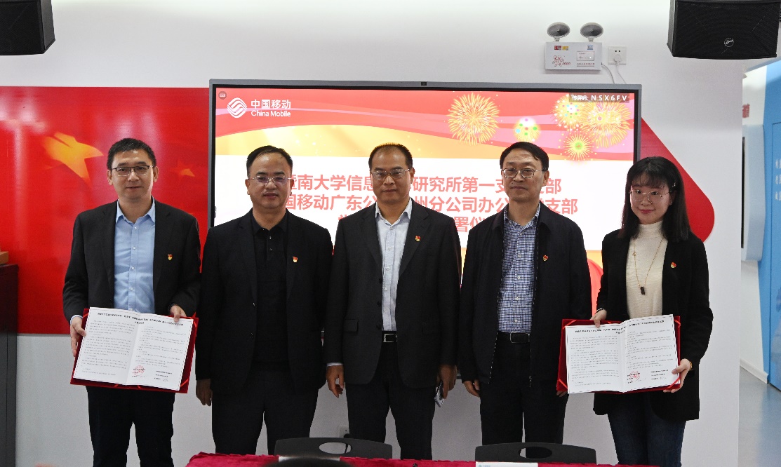 12月8日上午,双方在中国移动广州信息大厦举行党支部结对共建协议签署仪式,正式启动党支部结对共建工作。信息所所长刘明、党委书记刘远忠、第一党支部书记区小莹,广州移动党委委员陈永快、办公室党支部书记胡拓,以及两个党支部的部分党员同志参加了仪式。