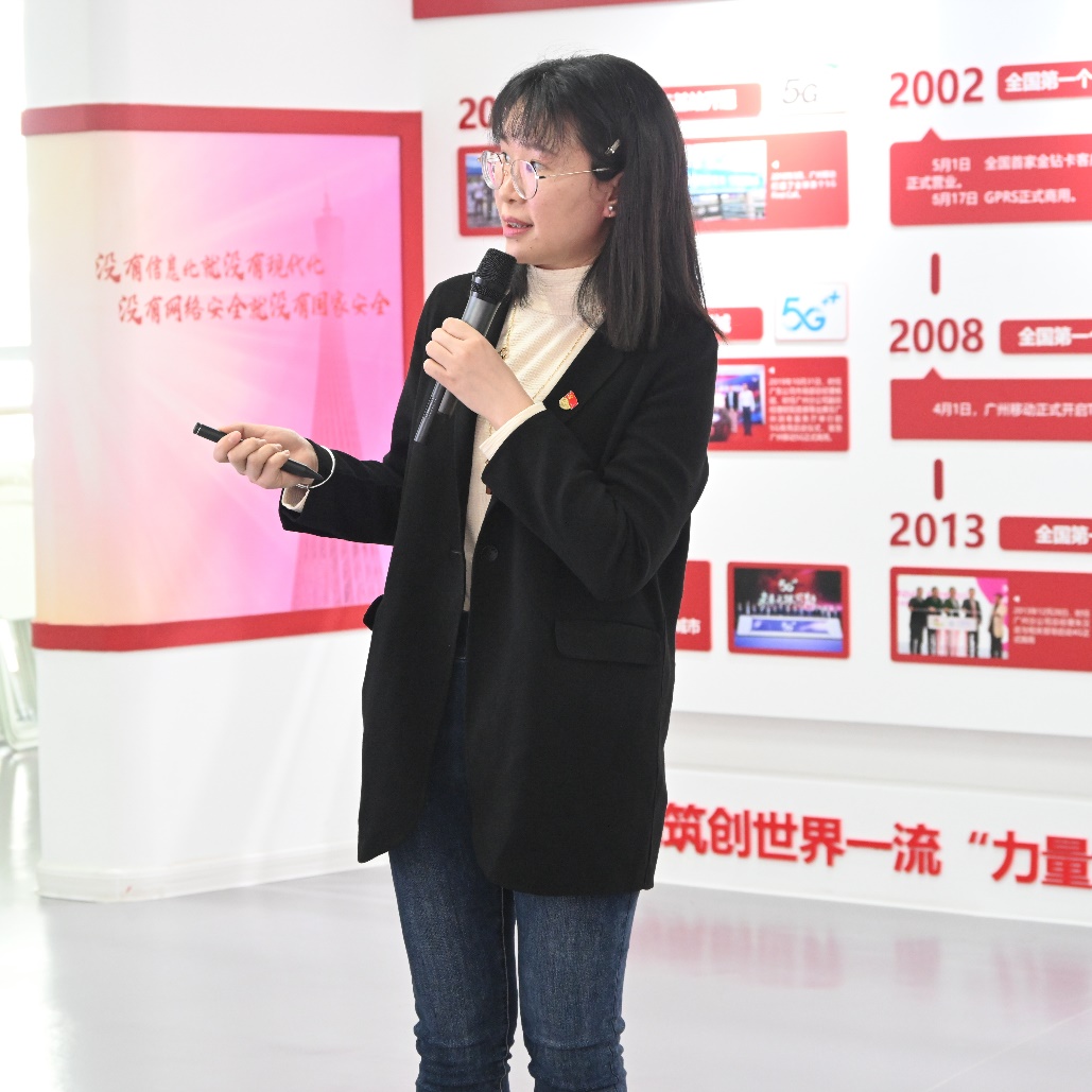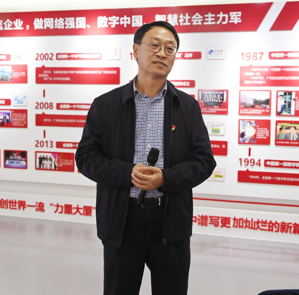 仪式开始前,刘明、刘远忠一行在陈永快、胡拓等人的陪同下,依次参观了广州移动的5G展厅、党建智慧展厅,了解了广州移动通过运用5G、3D、VR等数字化多媒体技术,突破传统党建教育形式,融合实现“立体、可视、多元”的党建服务,并围绕党建信息化应用等进行了经验交流。