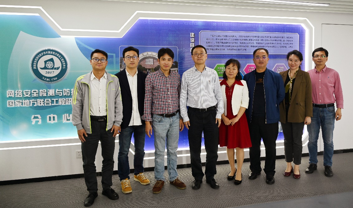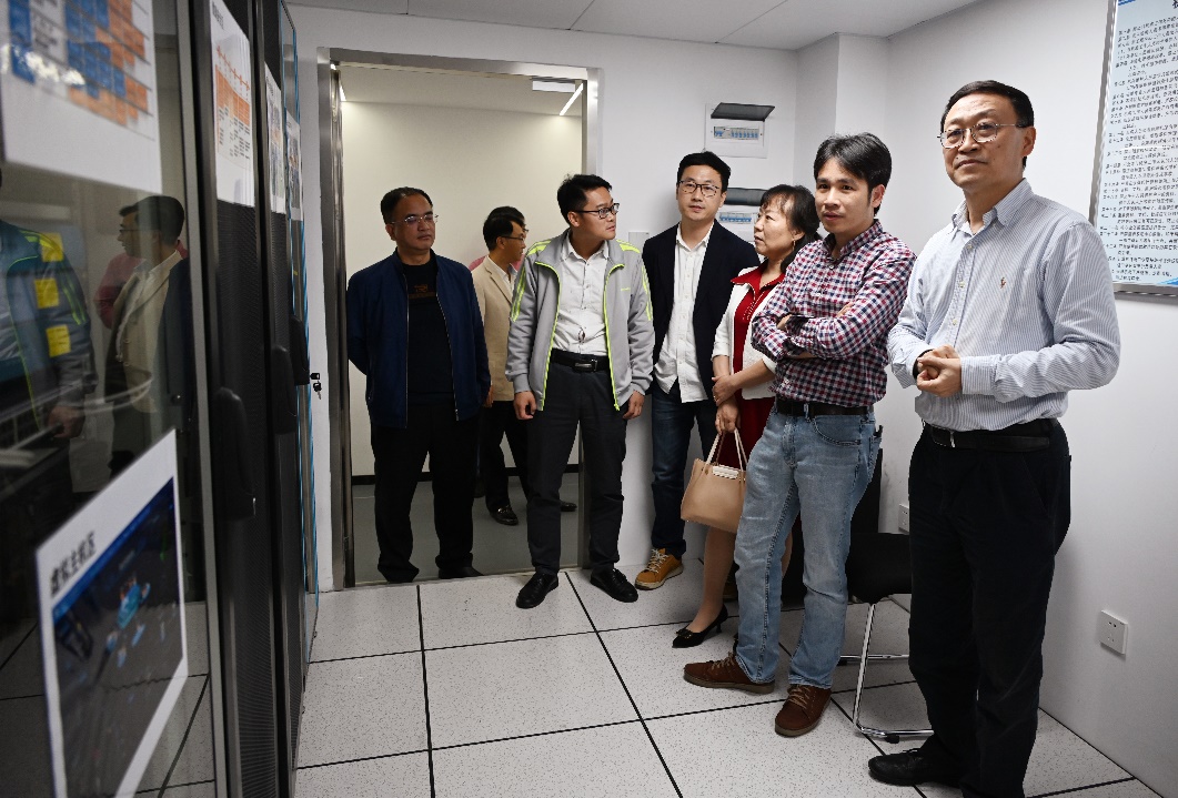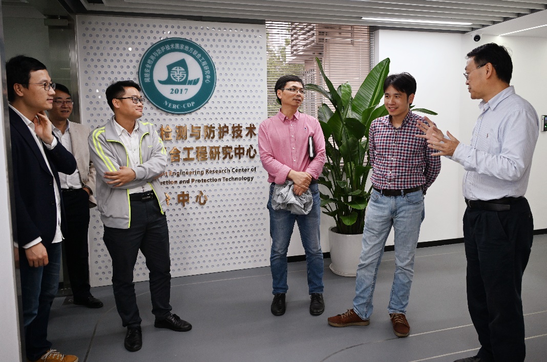 随后,龙锦益一行人在刘明等人的陪同下,参观了工程研究中心分中心的攻防演练场地、机房和办公场所,暨南大学教育学院环市东教学中心的教学场所和教学设备等。