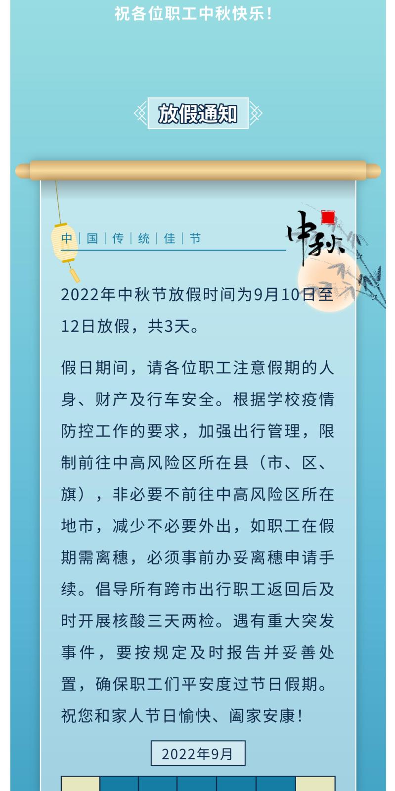 中秋节放假通知
