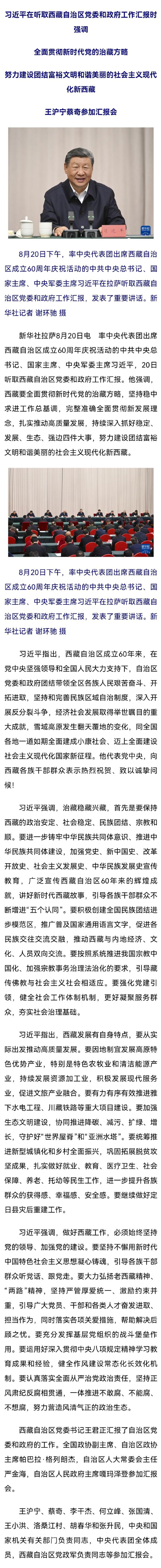 习近平:全面贯彻新时代党的治藏方略 努力建设团结富裕文明和谐美丽的社会主义现代化新西藏